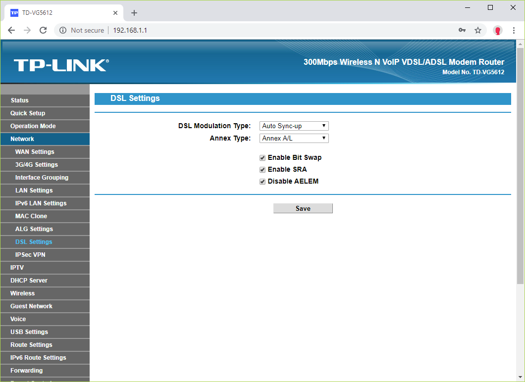 Enable Seamless Rate Adaption (SRA) on TP-Link TD-VG5612