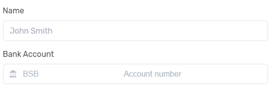 Enter the name on the account, and the Bank Account BSB and Account Number
