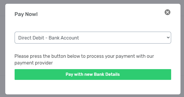 - From the Pop Up payment options, select "Direct Debit - Bank Account"